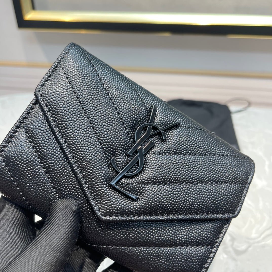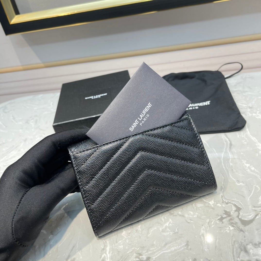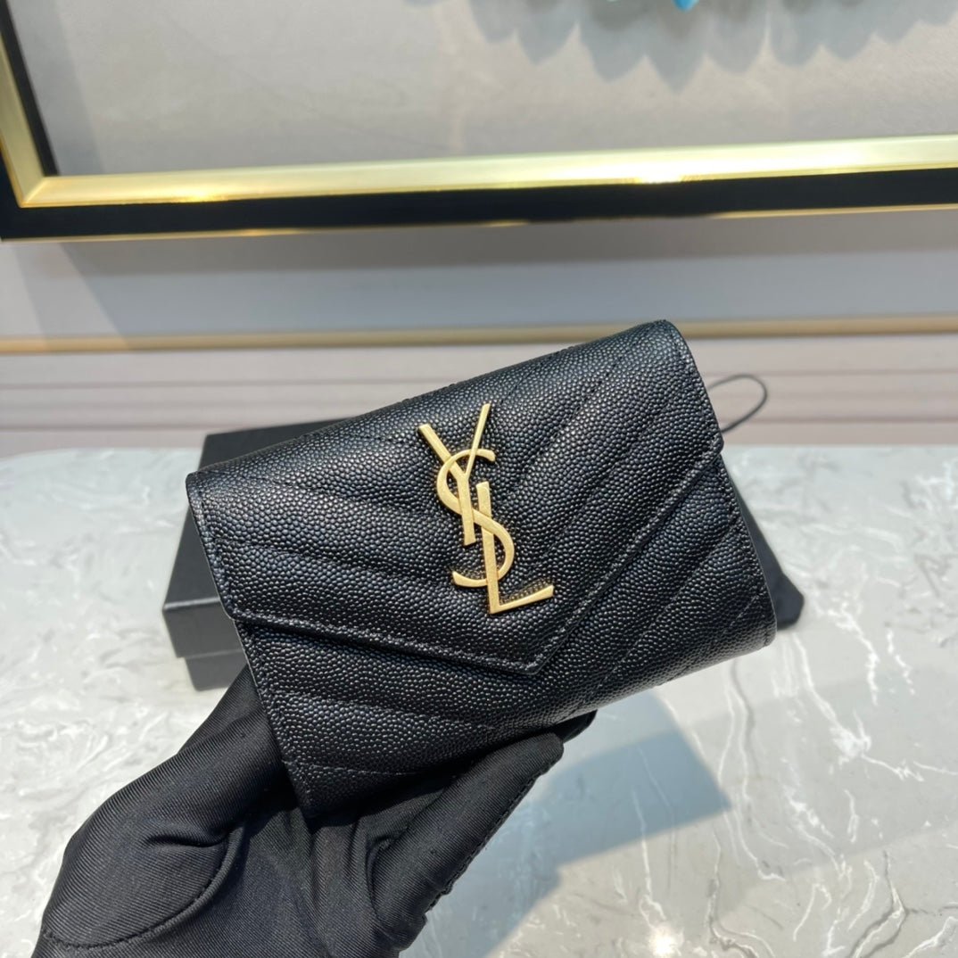【サンローラン】大人気ロゴ 小銭入れ付き 三つ折り財布4色