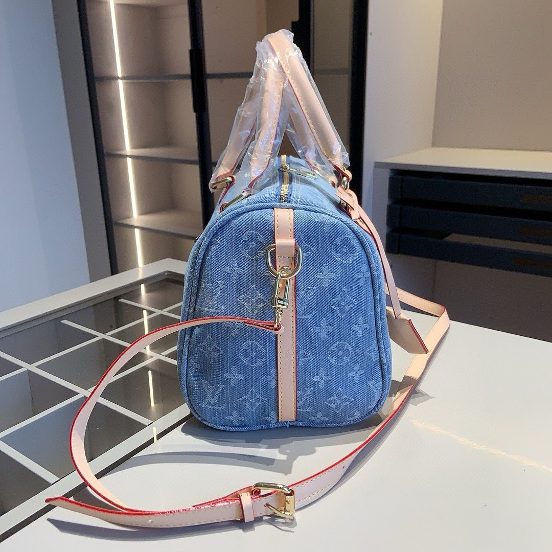 【ルイ・ヴィトン】☆キャリーオール トートバッグ|デニム素材の4点セット♪ベルトとチェーン付きで超おしゃれ!